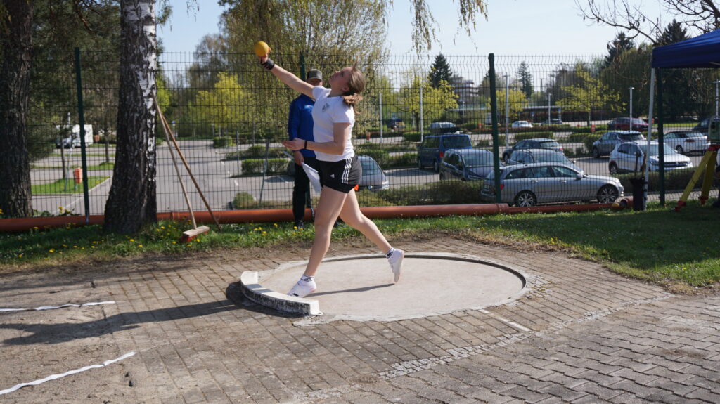 Als nächste im Bunde startete Klara Wutscher im Kugelstoß für den SV Ruhpolding. Obwohl es noch nicht ihre Lieblingsdisziplin ist, erzielte sie bereits im dritten Versuch eine neue persönliche Bestleistung von 10,46m, welche sie im fünften Durchgang mit 10,00m auch noch einmal bestätigen konnte. Damit belegte sie am Ende den dritten Platz. Am späten Nachmittag freute sie sich dafür umso mehr auf den Diskuswurf. Mit 32,93m gelang ihr im ersten Versuch bereits ein großartiger Wurf. Im vierten Durchgang verbesserte sich Klara jedoch noch einmal auf 34,39m, womit sie eine neue persönliche Bestleistung erzielte und sie sich die Qualifikation zu den Deutschen Meisterschaften sicherte. Jetzt muss sie nur noch am 1. Mai in Wasserburg die Zusatzleistung im Fünfkampf abhaken.